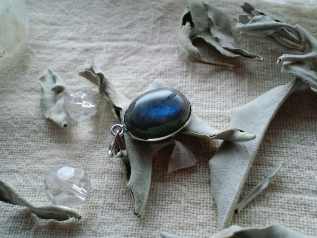 ブルー系のラブラドライト、ペンダントトップです。ラブラドライトの光の逸話。今回はおじいちゃんでした。ラブラドライトがお喋りしたがっているのは、悲しみや苦しみの中にいる人達を勇気づけたいからなのかもしれないって少し、そんなことを思いました。全員がバラバラに物語を紡いでいるようで、実は最後にちゃんとオチが来る…みたいです。この後に、あと二人いますのでもうしばらくラブラドライトの物語にお付き合いいただけると嬉しいです。