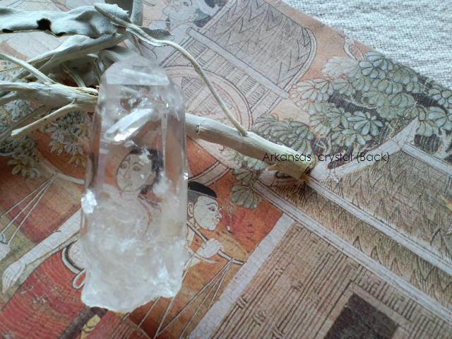 アメリカのアーカンソン州産クリスタルです。ジム・トンプソンのスカーフが入っていたラッピング袋の上で撮影!三枚目は、フェリシモで買ったシールの上で撮りました。幸せの青い鳥。アーカンソンのクリスタルは透明度がすこぶる高い、というので人気らしいので、ちょっとこんな写真を撮ってみました(笑)