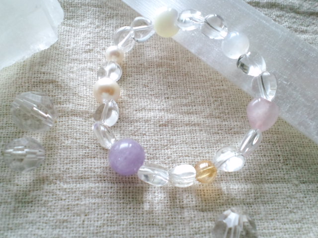 ナ・ムーさんでブレスレットのチェックをし、石を選び直して作成してもらいました。前回の組み合わせを撮っておくのを忘れてしまった!他でブレスレットを作成したことがないのでわからないですが、ここでブレスレットを作成すると必ず何か変化が起きるので通わせてもらっています。良く見てもらうと判りますが、繋いでいる水晶がハート型です。
