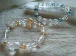 ショップのスタッフさんが「最近こんな感じなの」と言ってゴールデンオーラのブレスレット(手前)を見せてくれた時に、私も似たようなものが欲しくなり作成をお願いしたところ、アクアオーラ(後ろ)のブレスレットを創ってくれました。その時に降りて来た物語です。ゴールデンオーラがアレクサンドルで、アクアオーラがプトレマイオス(マケドニア王)です。